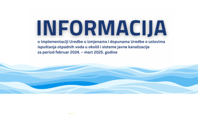 Informacija o implementaciji Uredbe o izmjenama i dopunama Uredbe o uslovima ispuštanja otpadnih voda u okoliš i sisteme javne kanalizacije za period februar 2024. – mart 2025. godina 02 apr 2026 Uredbom o izmjenama i dopunama Uredbe o uslovima ispuštanja otpadnih... Read More