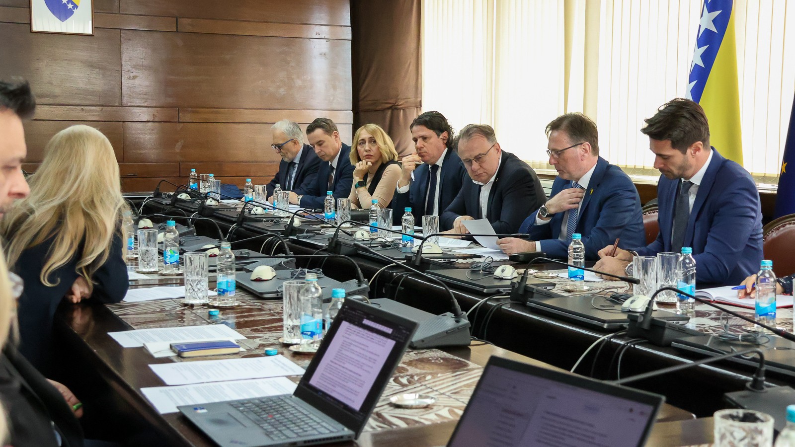 Prezentirano je sve što je do sada urađeno u ovoj oblasti, te naglašeno da je Vlada Federacije BiH 2022. godine usvojila Program za unapređenje sektora vodnih usluga, kao i da je 2023. godine provedena sveobuhvatna procjena propisa i formirana interresorna radna grupa. Tokom 2024. godine izrađen je i tekst Prednacrta zakona o vodnim uslugama, koji je upućen na mišljenja nadležnim institucijama i kantonima. Također, obrazloženo je da svi kantoni nisu dostavili svoja mišljenja.