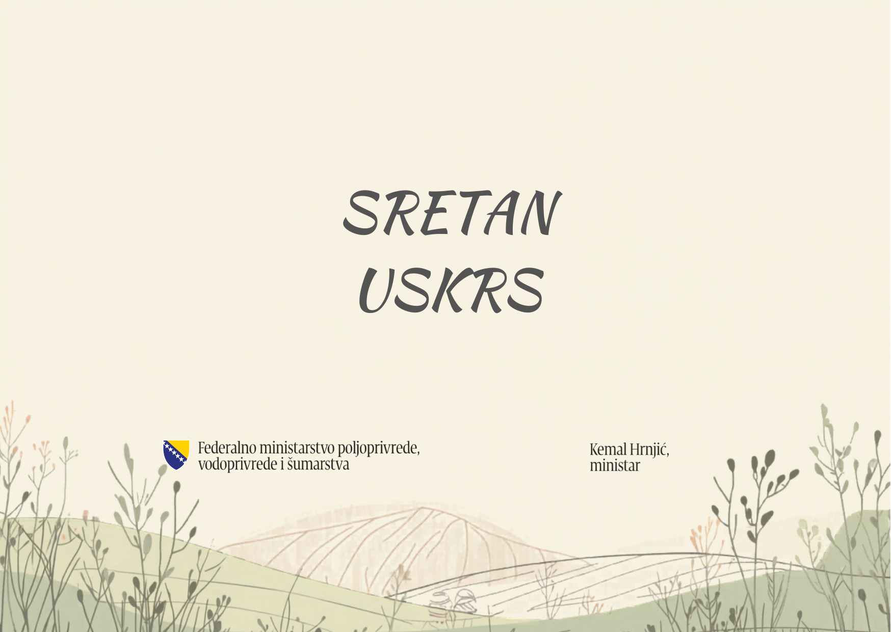 “Kolegama i uposlenicima u Federalnom ministarstvu poljoprivrede, vodoprivrede i šumarstva, katolicima širom domovine i svijeta, želim sretan Uskrs.