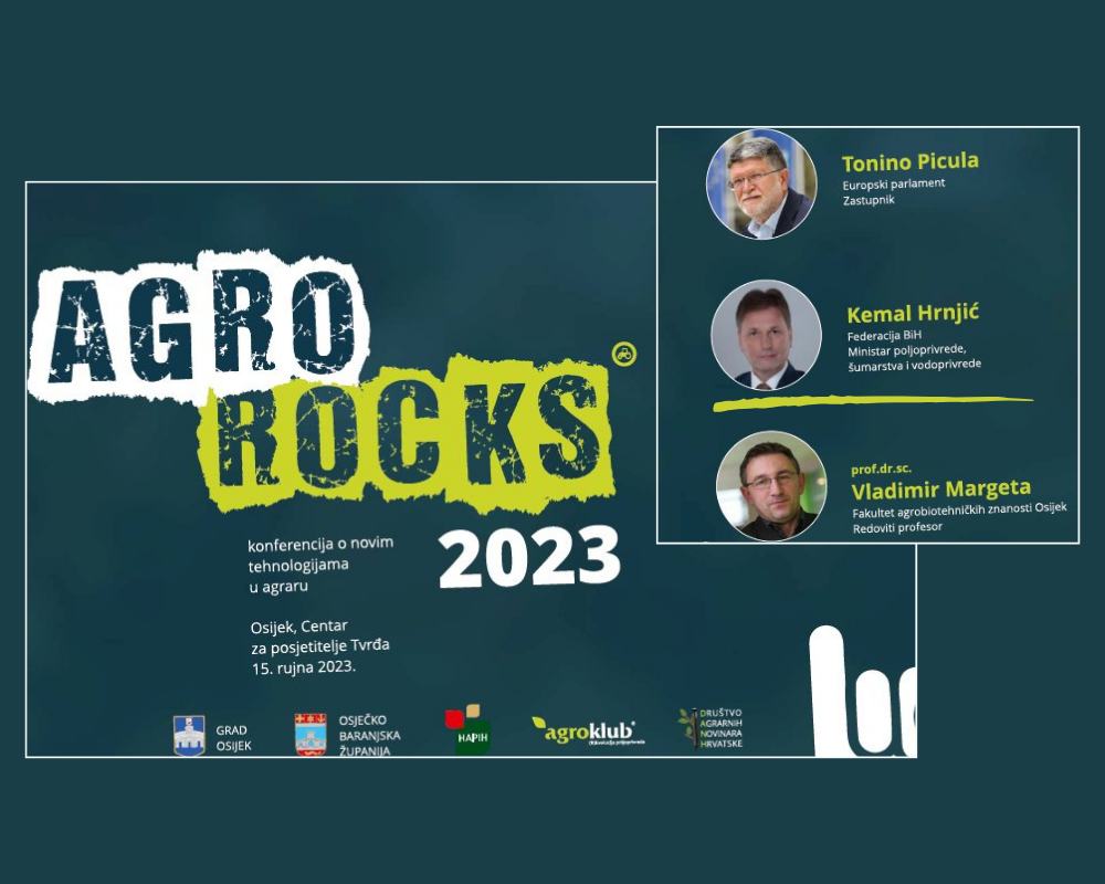 Federal Minister of Agriculture, Water Management and Forestry Kemal Hrnjić was a guest speaker at Agro.Rocks – a regional conference on new technologies in agriculture, held in Osijek (Republic of Croatia) on 15 September 2023 and organized by Agroklub information system and the Croatian Association of Agricultural Journalists, with the support of the City of Osijek, Osijek-Baranja County and the Croatian Agency for Agriculture and Food.